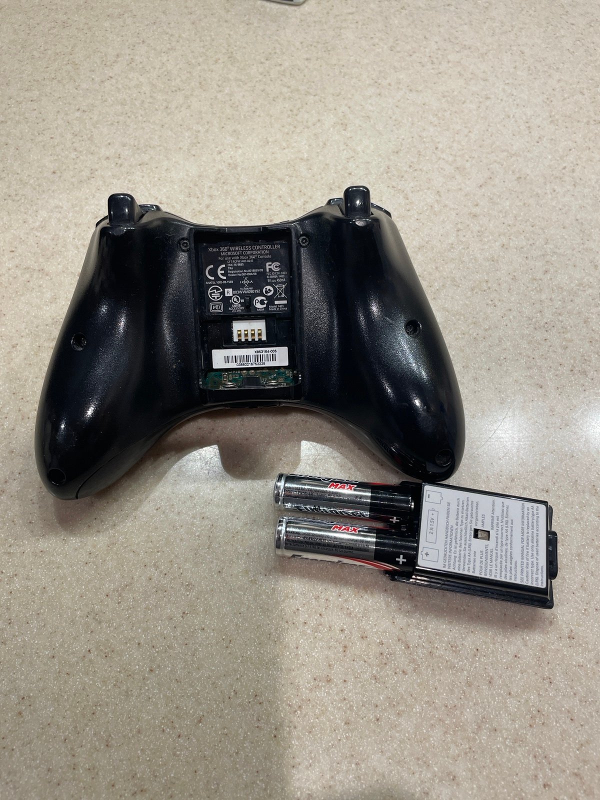 xbox360 console (works), 3 controllers (2 wired and 1 wireless, Kinnect, big button IR receiver with 4 controllers. Wireless controller uses batteries but batteries dead so wasn’t able to see if it worked. 2 wired controllers work. The console works played games today that we have listed separately.